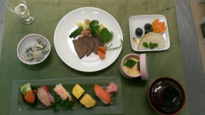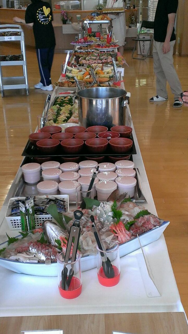 長崎市の特別養護老人ホームの敬老会のお写真です。9月22日(日)に特養様にバイキング・9/13~9/19のデイサービス週間となりました。施設様のご意向で、デイサービスのご利用者皆々様にお祝い膳をご提供いたしました。バイキングではお客様の目の前で、五島牛のステーキを焼いたり、お好みの握り寿司を握ったりのパフォーマンスを行いました。ご利用者様にはご家族様と楽しい時間をお過ごしいただけたようです。